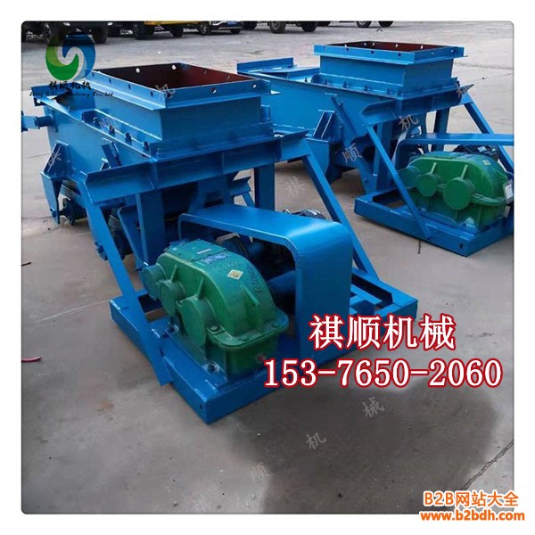 K型给料机由机架、底板(给料槽)、传动平台、漏斗、闸门、托辊组成,当电机开动后经弹性联轴器,减速机、曲柄连杆机构拖动倾斜5度的底板,在辊上作直线往复运动,把煤或其它磨琢性小,粘性不大的松散粒状,粉状物料从给料设备中均匀地卸到受料设备中