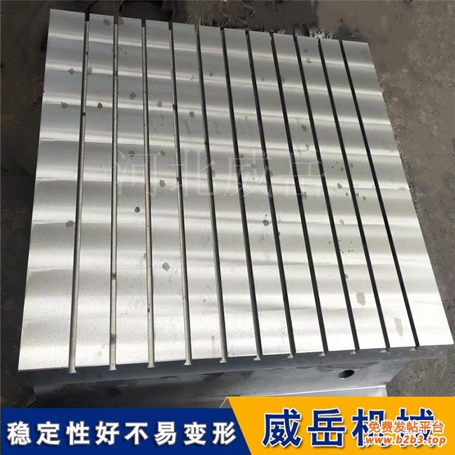 T型槽铸铁平台之所以能在工业领域获得广泛应用,源于其一系列的技术优势。模块化设计理念使平台具备了高的系统扩展性。通过标准化的T型槽接口,可以快速安装各种功能模块,虎钳、分度头、V型块等,轻松适应不同加工需求。这种设计大大缩短了工装准备时间,提高了生产灵活性。T型槽铸铁平台就是在铸铁平台的工作面上加工出T型槽。这些T型槽的作用是配合螺栓和螺杆来固定工件,方便焊接和装配等工作。T型槽的尺寸要根据使用的螺栓尺寸来确定,常见的尺寸在机械部标准里有详细的说明。